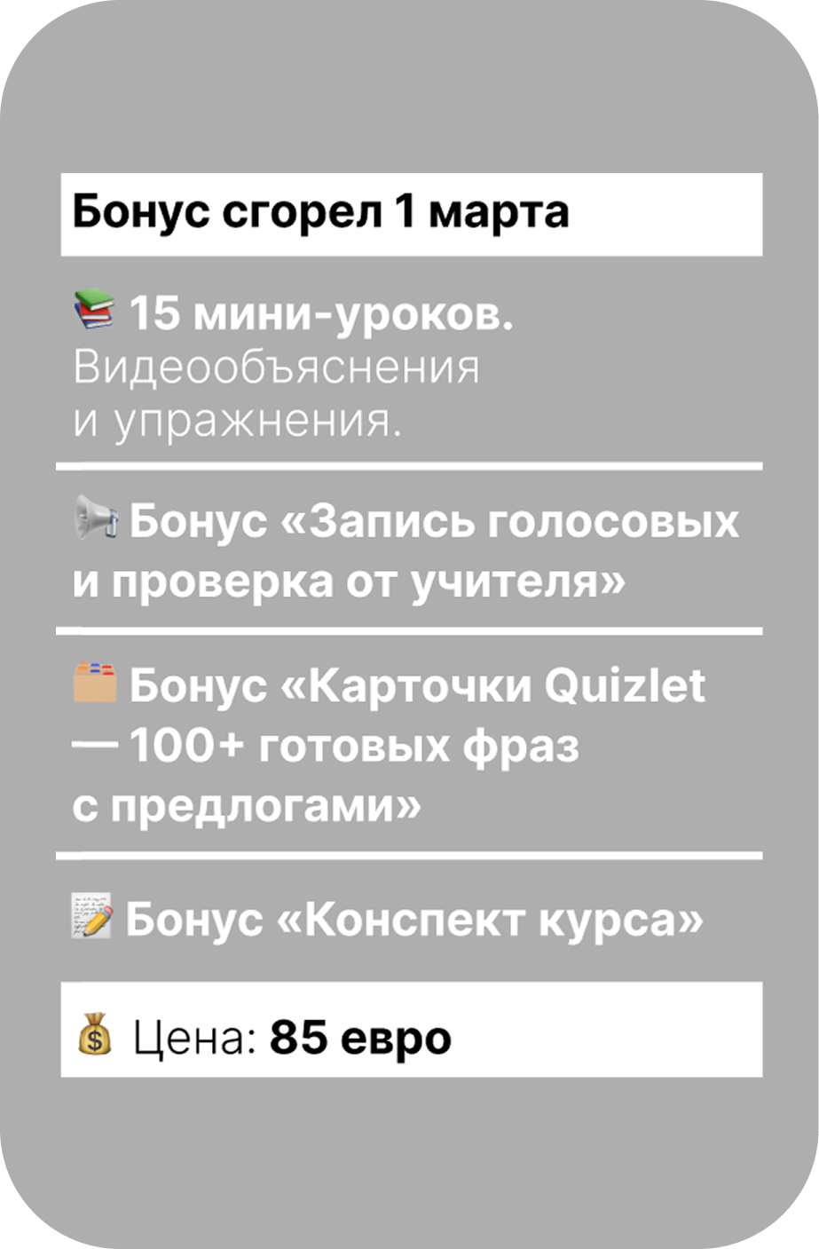 ✅ Один урок — один предлог. Сжато, четко и с примерами для жизни.